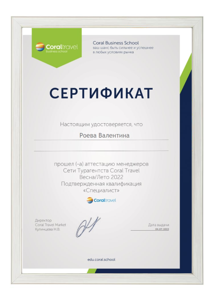 Не реже двух раз в год специалисты проходят курсы и тренинги по психологии общения с клиентами, проходят аттестацию на знание туристического продукта, а также принимают участие семинарах, презентациях и вебинарах.